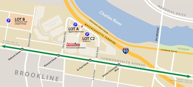 Additional parking in adjacent lots (Lots B and C-2) is also available for Agganis Arena events on a space available basis. Please review the parking map for lot locations and directions.